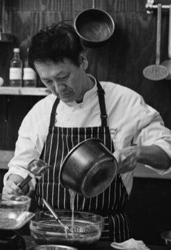 also studied large production in Hawaii and returned to Japan due to visa difficulties. After returning to Japan, became an executive officer and product developer for L,abeeile Co.BAKE Co. also the general manager of the Product Planning and Development Department